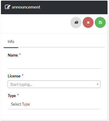 Now, complete the required fields under the Announcement Info tab, and click the save icon on the top right-hand side of the page as shown in Exhibit 3. For your convenience, a description of each field is given below.