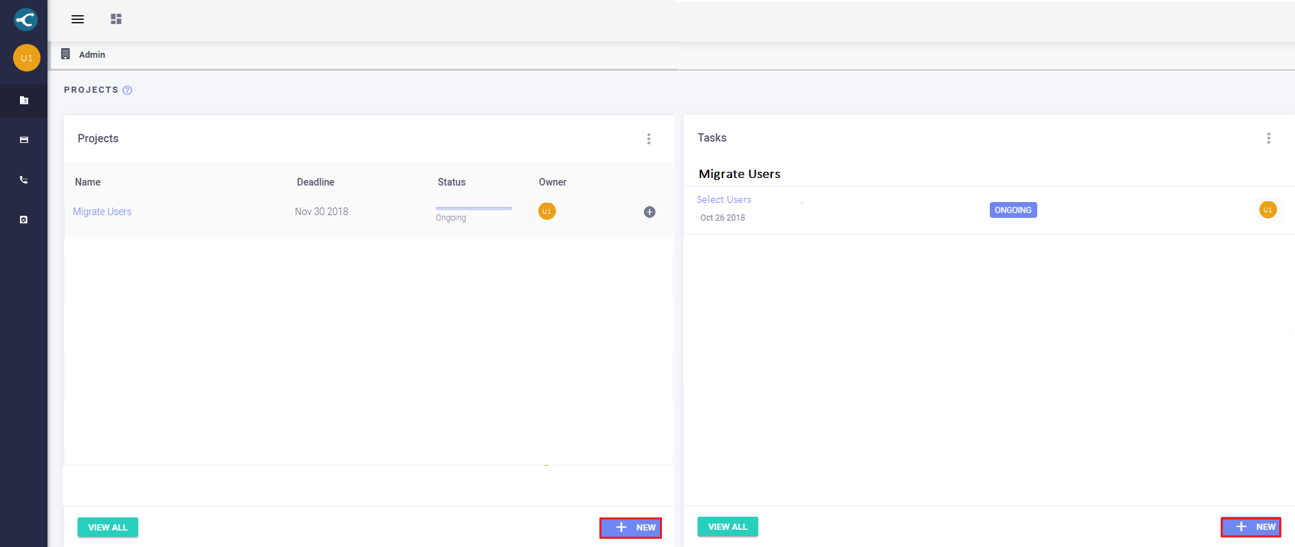 From the Dashboard click Project as shown in Exhibit 2a. Next, in the Task section click New as shown in Exhibit 2b.