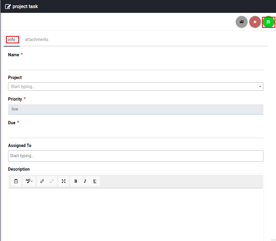 Almost done! Now, it’s time to create your task. Enter the information in the required fields for the Info section as shown in Exhibit 3a, you can also attach files in the Attachment section as shown in Exhibit 3b. Once you are done click save.