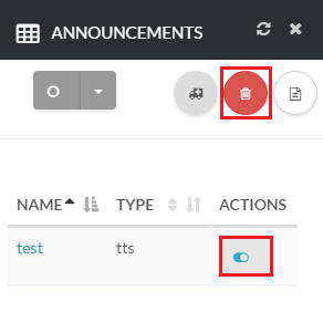 To delete a Announcements click the switch icon located under Actions next to the Announcements you want to delete as shown in Exhibit 3. Next, click the trashcan icon that will appear to delete the Announcements.