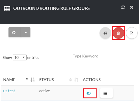To delete a outbound rule click the switch icon located under Actions next to the outbound rule you want to delete as shown in Exhibit 3. Next, click the trashcan icon that will appear to delete the outbound rule.