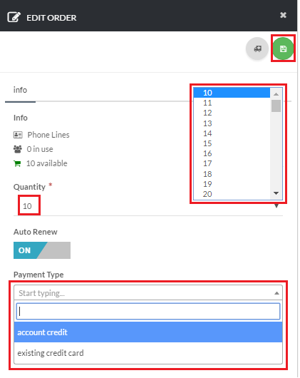 On the Licenses page, you can either Modify Quantity of existing licenses or Purchase a license from the list. To Modify Quantity of existing Apps, click on the gear icon as shown in Exhibit 4a. On the Edit Order page, update the Quantity and choose a Payment Method, then click on save as shown in Exhibit 4b.
