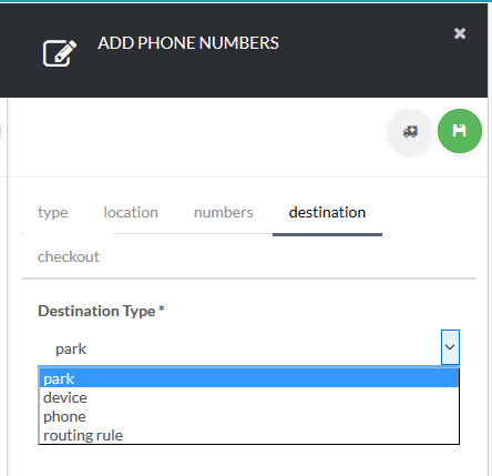 Choose a destination for your new numbers as shown in Exhibit 3d. Note, that the destination is not permanent and can always be changed in the numbers page.