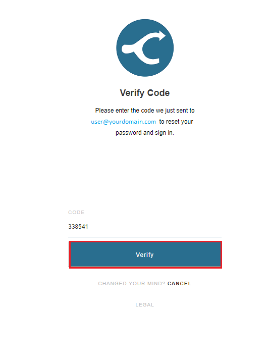 Now, check your email for the verification code that was sent as shown in Exhibit 2a, enter the verification code and click Verify as shown in Exhibit 2b.