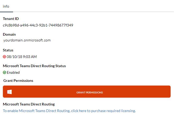 Once you have linked your Office 365/Azure Active Directory Organization successfully, you will then need to Grant Circuit ID access rights to automatically provision your Circuit ID SBC for Microsoft Teams.