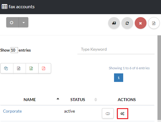 Navigate to Fax Accounts
