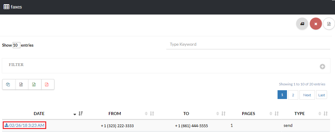 To view a Fax click the gear icon next to your Fax account as shown in Exhibit 3a. Now, click Faxes as shown in Exhibit 3b. Next, to view a fax click on the Date next to the fax as shown in Exhibit 3c