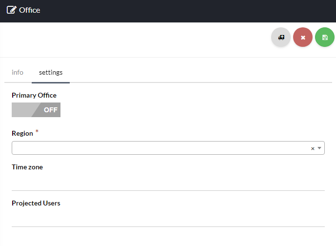Click the icon on the top right of the page to create a new office [su_exhibit text=”2b”]. You will then be directed to the new office page where you will be able to configure your office.