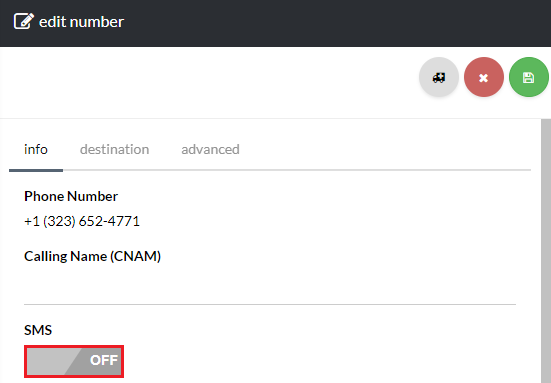 Note: Some Circuit ID DIDs are already SMS enabled, and most international DIDs have SMS services enabled. Check the phone numbers page to confirm if your DID is SMS enabled.