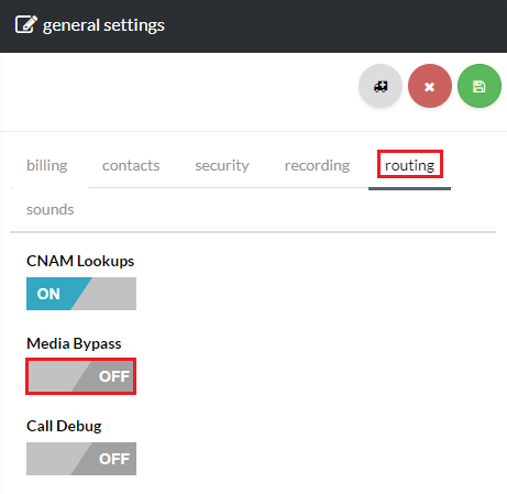 How to Enable/Disable Media Bypass [su_howto_introduction text=” Enable/Disable Media Bypass”] [su_howto_steps] 123 [su_management_portal_login] Navigate to General [su_dashboard_settings content=”General”] Enable/Disable Media Bypass Next, click the Routing tab at the top of the page. To enable/disable media bypass select On/Off, click save once you are done [su_exhibit text=”3″]. Exhibit 3 Enable/Disable Media Bypass [su_howto_conclusion text=” Enable/Disable Media Bypass”] print Don't be shellfish...FacebookDiggitGoogleLinkedinPinterestRedditStumbleuponTwitterEmail Updated on November 14, 2018 Tagged: bypassdisableenablemedia Was this article helpful? Yes No Related Articles How to Terminate Your Account How to Enable Call Recording Notifications How to Enable Transcribe on A Call How to Enable Comprehend on A Call How to Customize Hold Music How to Enable Call Recording