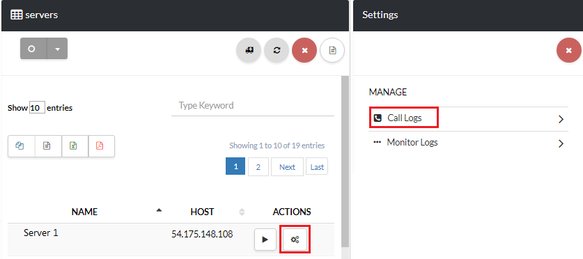 From the main menu click on Phone then select Servers [su_exhibit text=”5a”]. On the Servers page, click the gear icon under actions of your chosen server [su_exhibit text=”5b”]. Lastly, you can view the CDR on the Call Logs page [su_exhibit text=”5c”].